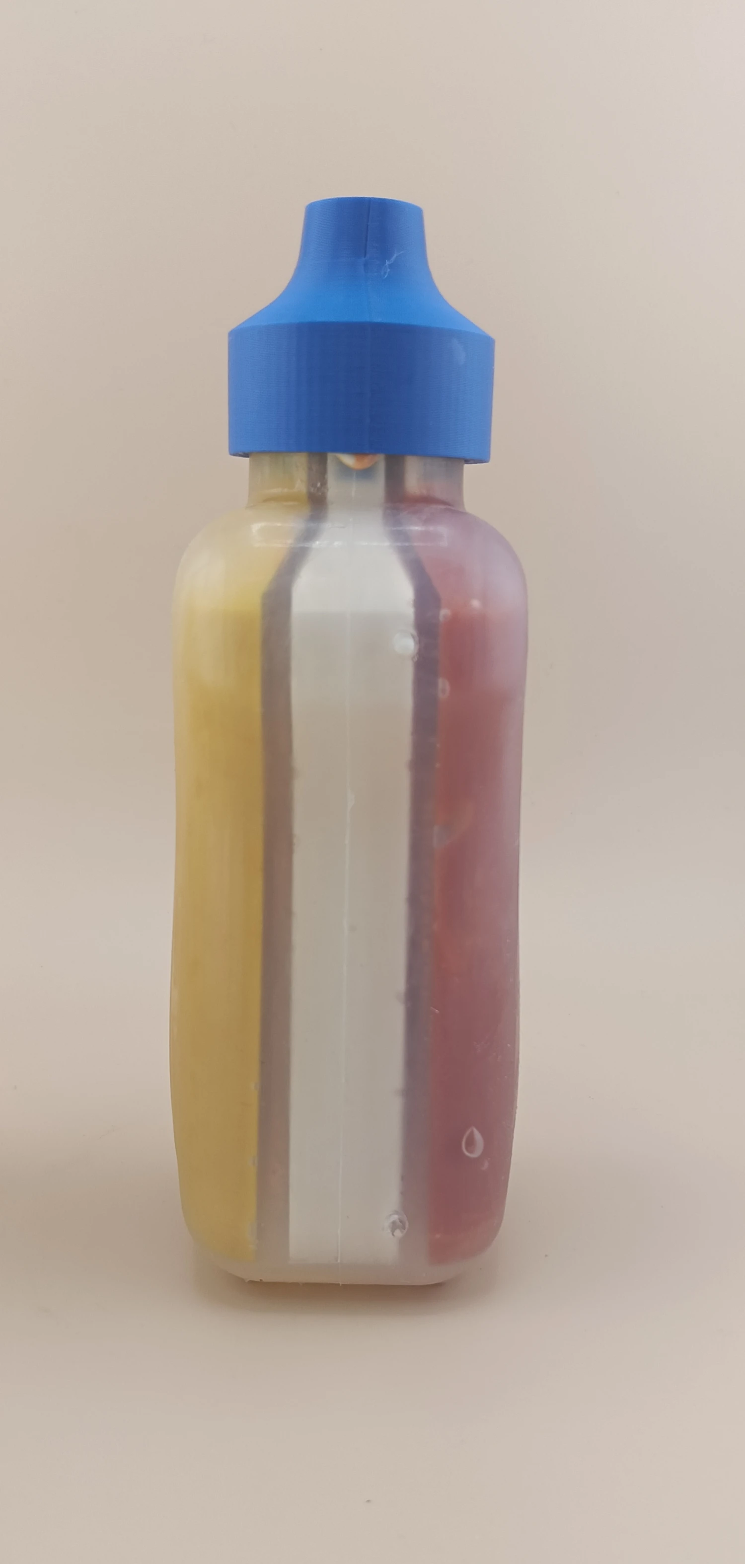 Nexform took ownership of the full development process, from design research through to final manufacture. Creating a triple chamber bottle that behaved consistently was a significant technical challenge, particularly ensuring even flow across three sauces with very different densities. We developed a custom three way nozzle with dedicated exit points, matched to three internal cavities designed to balance pressure and flow. Multiple test units were produced and evaluated, with each iteration refining both the internal geometry and user experience. Through repeated prototyping and fluid testing, we reached a configuration that worked reliably. To produce the final set of fifteen units, we combined vacuum casting with 3D printing. This allowed us to achieve the required accuracy for the internal channels while also delivering a clean external finish suitable for campaign use. The mix of processes ensured strength, repeatability and a professional appearance.
