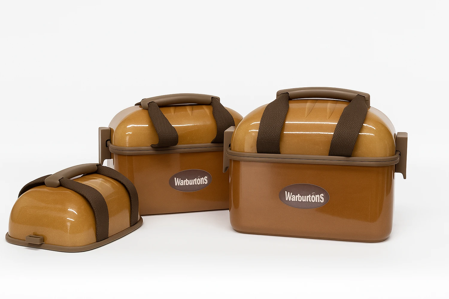 Nexform managed the entire project from concept development through to final production. We produced the full CAD design, prototyped the form and refined the details to ensure the loaf sat correctly within the internal volume. Once approved, all eight units were manufactured in house using FDM additive manufacturing. After printing, each case went through a hand finished post processing stage to smooth the outer surfaces and create a suitable base for vinyl graphics. This involved a healthy amount of classic elbow grease to achieve a clean finish. We then applied the campaign graphics and logos, ensuring strong adhesion and crisp edges. The cases were assembled, glued and quality checked by our team. Each one featured two locking latches, one on each end, and a brown webbing handle to complete the luggage aesthetic.